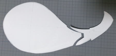 ネットの形を作る 実際の大きさで型紙を作ってみる。 大きな紙がなかなか入手しづらいと思ったが、 カレンダーの裏紙で十分であった。 フリーハンドで行き当たりばったりな感じだが、 実際に材を切ったりしながら修正していけば 良いと思う。 |
